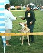 To dzięki Boltonowi polubiliśmy wystawy. Uczyliśmy go by ładnie stał, pokazywał zęby. Nasze potknięcia nie były karane - przez długi czas Bolton był jedynym wilczakiem na ringu, więc tytuły dostawał prawie automatycznie. Przychodzi jednak czas, gdy człowiekowi zaczyna brakować adrenaliny - ruszyliśmy na podbój zagranicy. Początkowo do Niemiec (na pierwszej dużej wystawie wilczaków wpadło nam do kieszeni Zwycięstwo Klubu Niemiec 2000), a potem do "ojczyzny" czeweczek; do Czech. I tam mimo sporej konkurencji załapaliśmy się na parę CAC'ów...